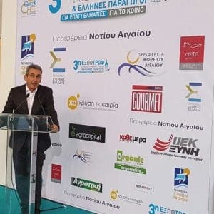 “Είμαστε εδώ για να θαυμάσουμε και να απολαύσουμε τον αστείρευτο πλούτο των νησιών μας, την ασύγκριτη ποιότητα των τοπικών προϊόντων μας, το μεράκι των ντόπιων παραγωγών που συνεχίζουν με πάθος την παράδοση και την εξελίσσουν. Ο πρωτογενής τομέας, είναι άλλος ένας πυλώνας της βαριάς βιομηχανίας των νησιών μας. Η Περιφέρεια Νοτίου Αιγαίου στέκεται σταθερά κοντά στους παραγωγούς μας, στηρίζει, προάγει και αναδεικνύει την δουλειά τους, αναδεικνύει την μοναδικότητα της Κουζίνας του Αιγαίου. Έχουμε ήδη ξεκινήσει την διαδικασία ανάδειξης τεσσάρων μοναδικών προϊόντων των νησιών μας σε Προϊόντα Ονομασίας Προέλευσης (ΠΟΠ). Συνεχίζουμε προγραμματίζοντας και νέες δράσεις στήριξης των τοπικών μας προϊόντων”.