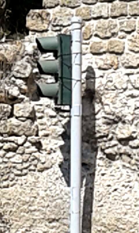 Ο φωτεινός σηματοδότης, στον οποίο γίνεται για πρώτη φορά χρήση της σημαντικής αυτής εφεύρεσης βρίσκεται στην οδό ΠΑΠΑΛΟΥΚΑ, στην διασταύρωση του ορφανοτροφείου.