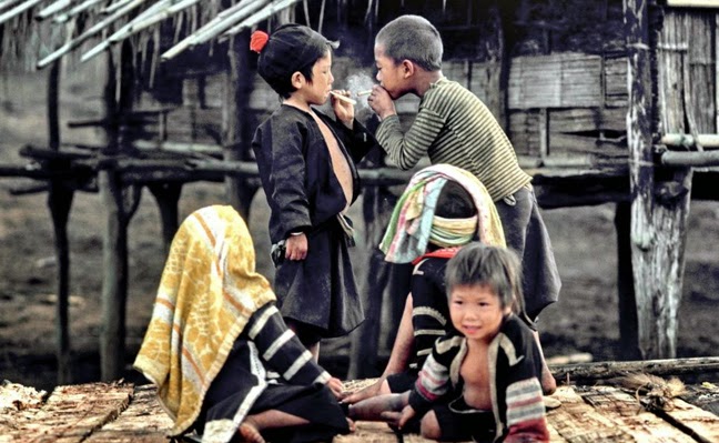 Οι φωτογραφίες τραβήχτηκαν την δεκαετία του ’70 και του ’80 και απεικονίζουν παιδιά που καπνίζουν, που φορούν περίεργα κοσμήματα και που παίζουν μέσα σε φυτείες όπιου.Είναι οι τελευταίες και εξαιρετικά σπάνιες φωτογραφίες μιας φυλής που δεν υπάρχει πια. Μιας φυλής με… παράξενα ήθη, όπου τα παιδιά κάπνιζαν -ακόμη και τα βρέφη (!)- και έπαιζαν με όπλα μέσα σε φυτείες οπίου, φορώντας στολές και μεγάλα κοσμήματα.