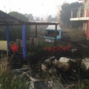 Η φωτιά άγγιξε απειλητικά με τις φλόγες της ένα σπίτι όμως οι ισχυρές δυναμεις κατάσβεσης κατάφεραν να αποσοβήσουν τον κίνδυνο την τελευταία στιγμή .