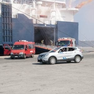 Στην εν λόγω άσκηση, που έλαβε χώρα παρουσία του Διευθυντή του Κλάδου Ασφάλειας και Αστυνόμευσης του Αρχηγείου Λιμενικού Σώματος – Ελληνικής Ακτοφυλακής Υποναυάρχου Λ.Σ. ΑΡΓΥΡΙΟΥ Ιωάννη, συμμετείχαν το προσωπικό, το Κλιμάκιο Ειδικών Αποστολών και πυροτεχνουργοί του Κεντρικού Λιμεναρχείου Ρόδου, ελικόπτερο Λ.Σ. – ΕΛ.ΑΚΤ., περιπολικά σκάφη Λ.Σ .-ΕΛ.ΑΚΤ., περιπολικά οχήματα Λ.Σ. – ΕΛ.ΑΚΤ., το πλήρωμα του ανωτέρω Ε/Γ – Ο/Γ πλοίου, το Τμήμα Τροχαίας Ρόδου, στρατιωτικά κλιμάκια, κλιμάκια της Πολιτικής Προστασίας Ρόδου και του Δήμου Ρόδου, σκύλος ανίχνευσης εκρηκτικών υλών, πυροσβεστικά οχήματα της Πυροσβεστικής Υπηρεσίας Ρόδου, ασθενοφόρα οχήματα του ΕΚΑΒ, καθώς και τρία (03) ρυμουλκά του λιμένα Ρόδου.