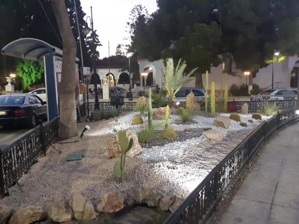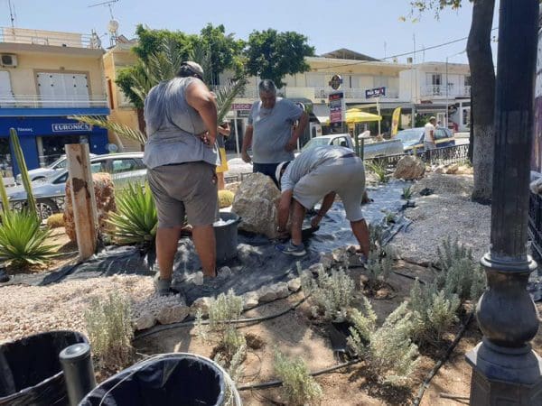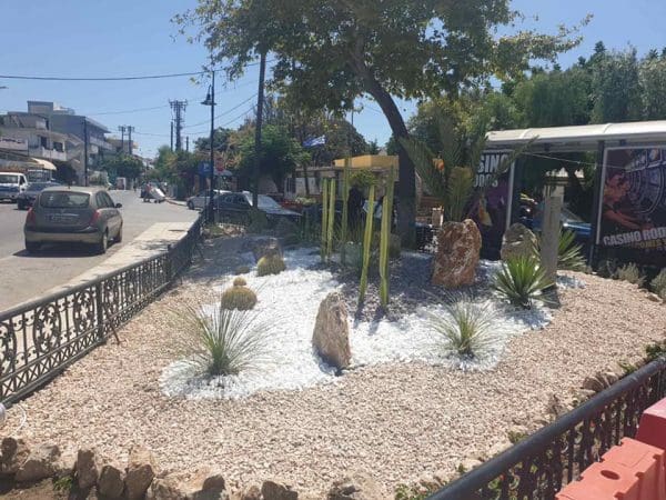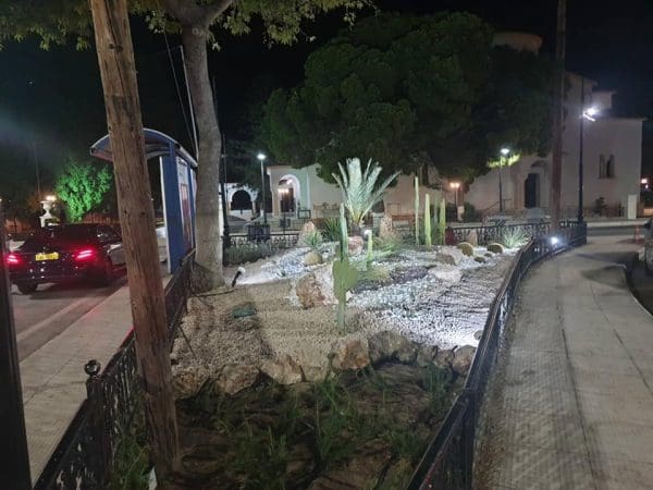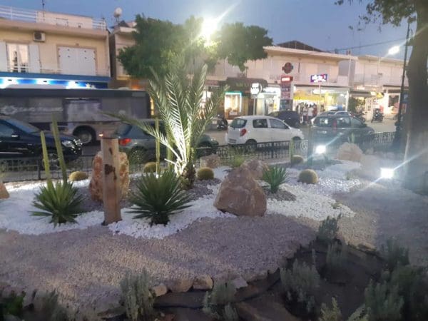 Εγκαταστήσαμε για το πότισμα αυτόνομο σύστημα άρδευσης καθώς επίσης και επιδαπέδιους προβολείς για την ανάδειξη και τον επαρκή φωτισμό των φυτών.