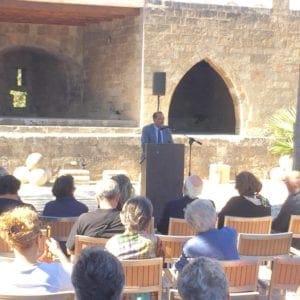Ο Δήμαρχος Ρόδου, στην ομιλία του ανέφερε μεταξύ άλλων ότι έχουμε χρέος να συνδράμουμε στην προστασία, στη διάσωση και ανάδειξη του Ελληνικού πολιτισμού, ενός από τους μεγαλύτερους πολιτισμούς της Ευρώπης αλλά και του παγκόσμιου πολιτισμού , στον οποίο η Ρόδος κατέχει σημαντική θέση, συγκαταλέγεται στον Κατάλογο της Παγκόσμιας Κληρονομιάς της UNESCO και είναι συνδεδεμένη με σημαντικά στάδια της ιστορίας. Συνεχάρη και ευχαρίστησε τους συντελεστές της Επιστημονικής Επιτροπής των Μνημείων της Μεσαιωνικής Πόλης του Υπουργείου Πολιτισμού και τις επιστημονικές αποστολές της Αρχαιολογικής Υπηρεσίας.