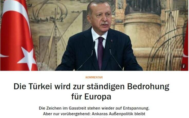 Άρθρο της γερμανικής Handelsblatt εστιάζει στην προκλητική εξωτερική πολιτική της Τουρκίας, την οποία χαρακτηρίζει ως απειλή για την Ευρώπη.