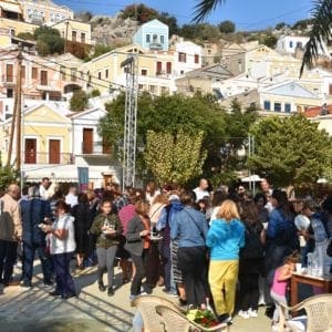 Το Σάββατο 10 Νοεμβρίου, στις 11.00 το πρωί, στην Κεντρική Πλατεία του Γυαλού, η Σύμη απέδειξε ότι η πλούσια γαστρονομία της βασίζεται στην παράδοση και αποτυπώνει την κοινωνική και θρησκευτική ζωή αιώνων, από γενιά σε γενιά. Συνταγές πλούσιες από τα  προϊόντα που παράγει το νησί αλλά και συγχρόνως με δυτική επιρροή από τα ταξίδια των καπεταναίων και τα εισαγόμενα είδη. Πολλά θαλασσινά, λίγο κρέας, γαλακτοκομικά και λαχανικά, συνθέτουν με χρώματα και γεύσεις μοναδικές συνταγές για την καθημερινότητα, τις γιορτές, τις μεγάλες κοινωνικές εκδηλώσεις.