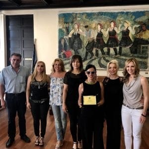 Η κα Χατζηλαζάρου έδωσε στη κα Ψυχούλη ως αναμνηστικά δώρα, βιβλία, ανάμεσα τους και το γνωστό βιβλίο του Ηλία Κόλλια για τη Μεσαιωνική Πόλη, τοπικά προϊόντα και κρασιά, προσφορά των εταιρειών Natura Rodos – Σταύρος Γεώργιος Κάλλας Ο.Ε και Ν. Τατάκης ΑΕ – Tatakis Wines αντίστοιχα.