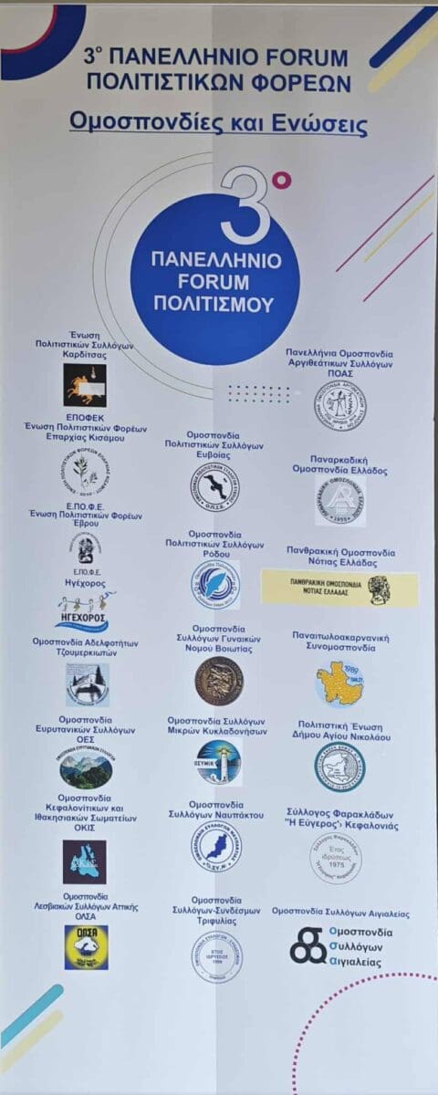 Με ενεργή και δυναμική παρουσία συμμετείχε η Ομοσπονδία Πολιτιστικών Συλλόγων Ρόδου στο 3ο Πανελλήνιο Φόρουμ Πολιτιστικών Φορέων και Ομοσπονδιών, που πραγματοποιήθηκε στην Αιγιαλεία από τις 3 έως τις 5 Οκτωβρίου 2025, υπό την αιγίδα του Υπουργείου Πολιτισμού και με τη στήριξη της Περιφέρειας Δυτικής Ελλάδας και του Δήμου Αιγιαλείας.