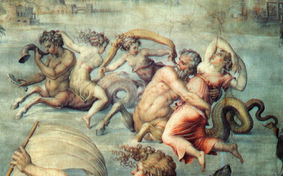 Απεικονίζει ένα ζευγάρι Αφρικανικών θαλασσίων – Θεών να κολυμπούν παράλληλα με το άρμα του Ποσειδώνα: ο ένας είναι ο Αφρός και ο άλλος ένας Τρίτων με διπλή ουρά, θεότητα τηςΛιβυκής λίμνης Τριτωνίδος. Ένα άλλο ψηφιδωτό από την Πάφο στην Κύπρο, απεικονίζει τον Βυθό μόνο του (ονομαστικά) να μεταφέρει την Νηρηίδα Θέτιδα, μαζίμε δύο άλλες Νηρηίδες, την Δωρίδα και τηνΓαλάτεια.