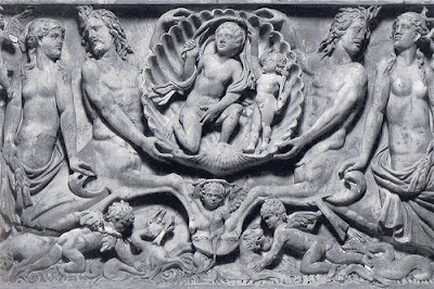 Απεικονίζει ένα ζευγάρι Αφρικανικών θαλασσίων – Θεών να κολυμπούν παράλληλα με το άρμα του Ποσειδώνα: ο ένας είναι ο Αφρός και ο άλλος ένας Τρίτων με διπλή ουρά, θεότητα τηςΛιβυκής λίμνης Τριτωνίδος. Ένα άλλο ψηφιδωτό από την Πάφο στην Κύπρο, απεικονίζει τον Βυθό μόνο του (ονομαστικά) να μεταφέρει την Νηρηίδα Θέτιδα, μαζίμε δύο άλλες Νηρηίδες, την Δωρίδα και τηνΓαλάτεια.
