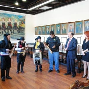 Ακολούθως τα Ποντιακά κάλαντα έπαιξε στο Δήμαρχο ομάδα Ποντίων της Ρόδου και στη συνέχεια ο Παγκαρπαθιακός Σύλλογος Ρόδου ο οποίος χάρισε στον κ. Χατζηδιάκο και το ημερολόγιο που εξέδωσε για το 2016 με Καρπάθικες συνταγές μαγειρικής.