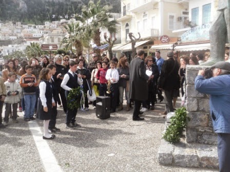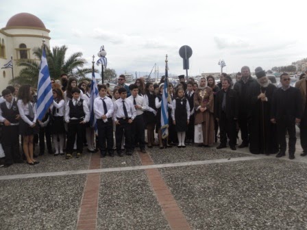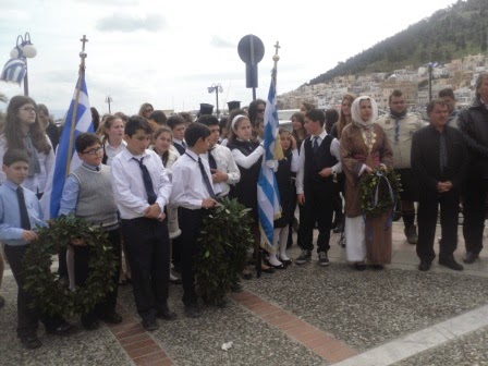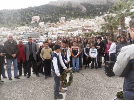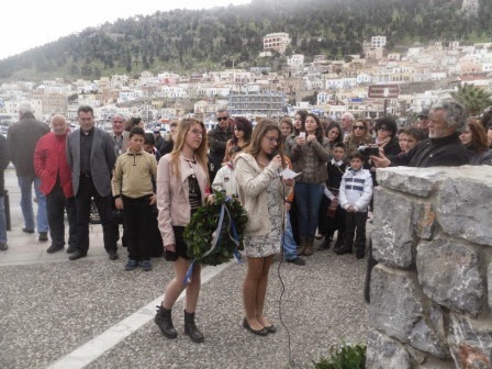 Μπροστά από το άγαλμα του πρωταγωνιστή για την Ενσωμάτωση της Δωδεκανήσου Σκεύου Ζερβού, έγινε σήμερα η κατάθεση στεφάνων από την μαθητιώσα νεολαία και σωματεία του νησιού, μέσα σ’ ένα κλίμα άψογης οργάνωσης και μεγάλης συμμετοχής.