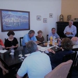 Στη συνέχεια, στο δημοτικό μέγαρο, σε συνάντηση εργασίας με το Δήμαρχο Γιάννη Γαλουζή, τον αντιδήμαρχο Μικέ Ρήγα και τον πρόεδρο Επιτροπής Πολιτισμού Γιάννη Διαμαντή, συζητήθηκε η συνδιοργάνωση με την Περιφέρεια Νοτίου Αιγαίου, των καλοκαιρινών εκδηλώσεων, που για φέτος, θα αποκτήσουν διαφορετικό νόημα και χροιά, λόγω των πολυπληθών συλλόγων των αποδήμων, που θα βρίσκονται στο νησί, για το « Συναπάντημα των Απανταχού Καλυμνίων», αλλά και οι εκδηλώσεις στο πλαίσιο του ετήσιου, Αναρριχητικού Φεστιβάλ.