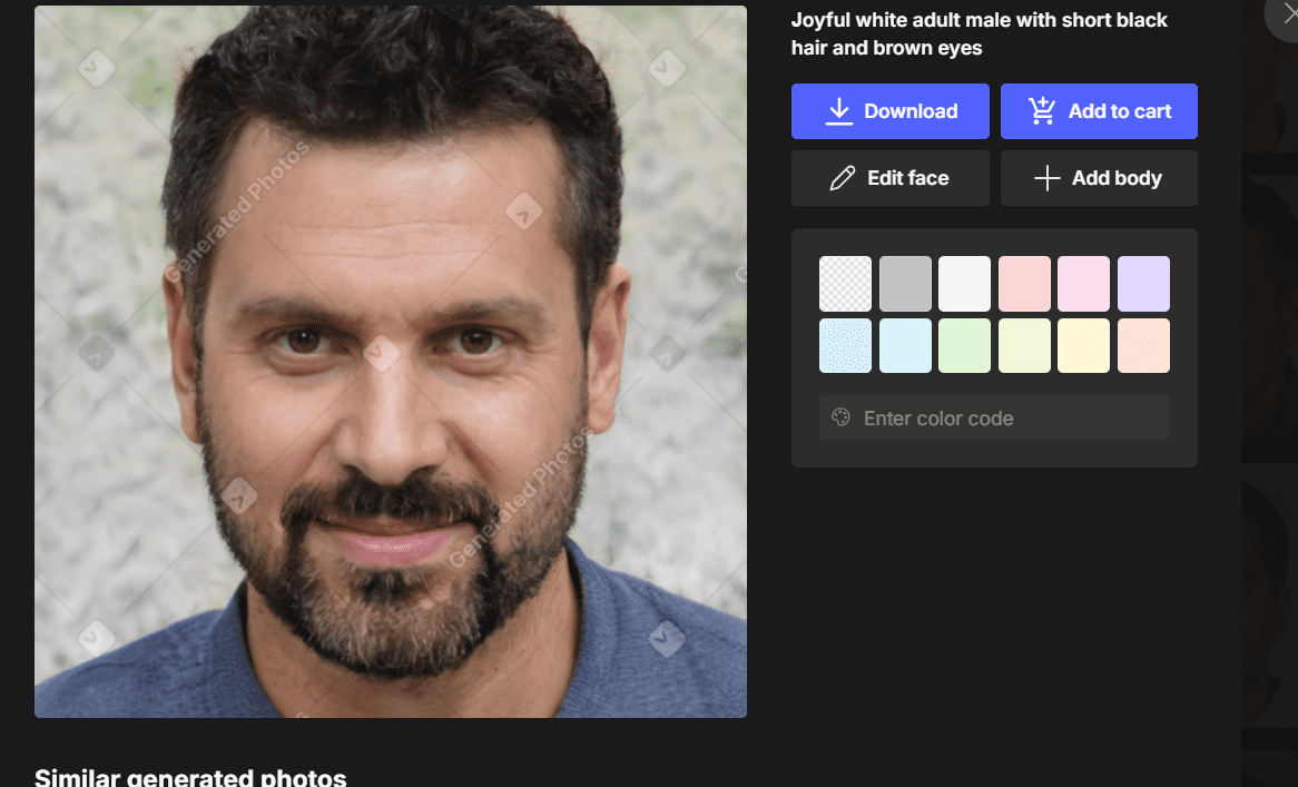 Αναλύοντας λοιπόν και τη φωτογραφία του προφίλ, διαπιστώσαμε ότι είναι AI generated, δηλαδή δημιούργημα τεχνητής νοημοσύνης. Κι όχι μόνο αυτό: «ως διά μαγείας» εντοπίσαμε την ίδια φιγούρα να φιγουράρει σε πλατφόρμα με έτοιμες, προς πώληση, τεχνητά παραγόμενες εικόνες, ανάμεσα σε πολλούς ακόμη «υποψήφιους Σταμάτηδες».