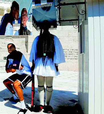 Στις παρακάτω φωτογραφίες ο Κέβιν Ντουράντ και κάποιος φίλος του με θρασύ και προκλητικό τρόπο παίρνουν «περίεργες» πόζες δίπλα στον λεβέντη Έλληνα Εύζωνα του Μνημείου του Αγνώστου Στρατιώτη στο Σύνταγμα…