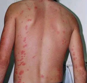 Χαρακτηριστική είναι η εικόνα γαζώματος πάνω στο σώμα από νύγματα του κοριού.