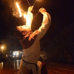 Οι εκλάμψεις των βεγγαλικών να ομορφαίνουν περισσότερο το κάστρο και η ομάδα των ζογκλέρ να προσφέρουν ένα υψηλό θέαμα με φωτιές και ακροβατικά που έκοβαν την ανάσα.