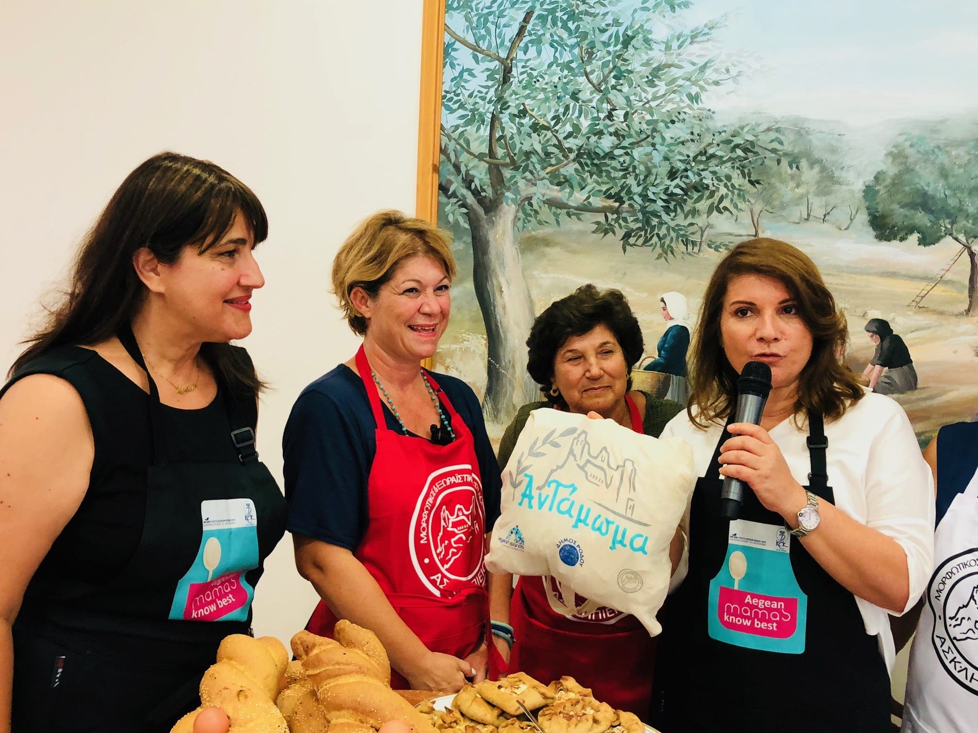 Η Αντιπεριφερειάρχης Τουρισμού – Αθλητισμού – Πολιτισμού, Μαριέτα Παπαβασιλείου, στην ομιλία της έκανε ιδιαίτερη αναφορά στις γυναίκες του Ασκληπιείου, τις οποίες ευχαρίστησε για την ενθουσιώδη ανταπόκρισή τους στο κάλεσμα της Περιφέρειας να συμμετάσχουν στην δράση “Aegean mamas know best” και τόνισε ότι παραδοσιακά πρωτοστατούσαν στην κοινωνική ζωή του τόπου τους και μια μορφή έκφρασής τους ήταν και η γαστρονομία.