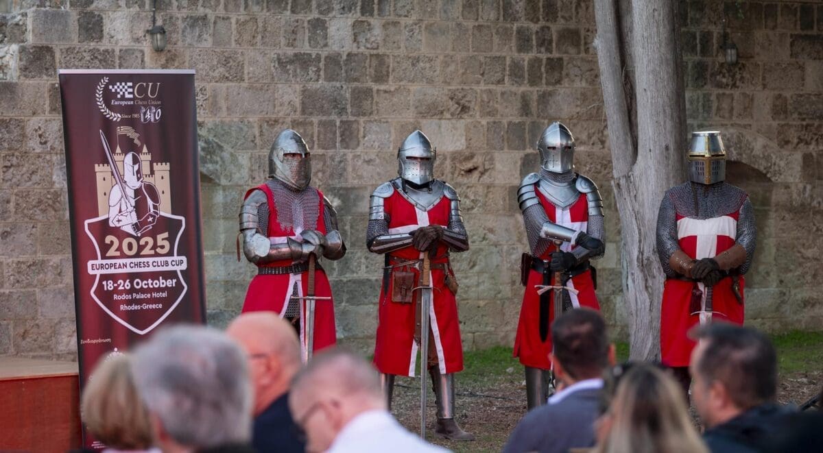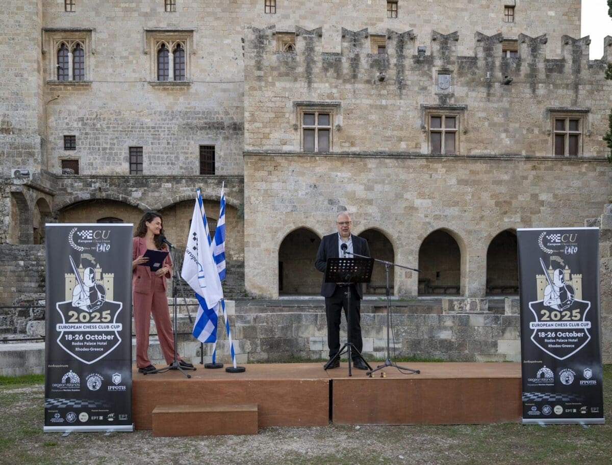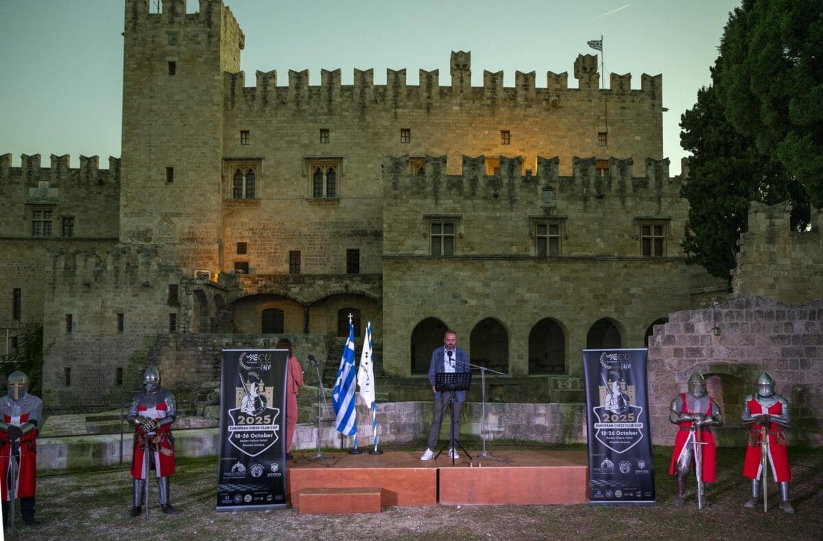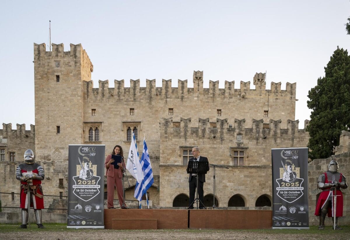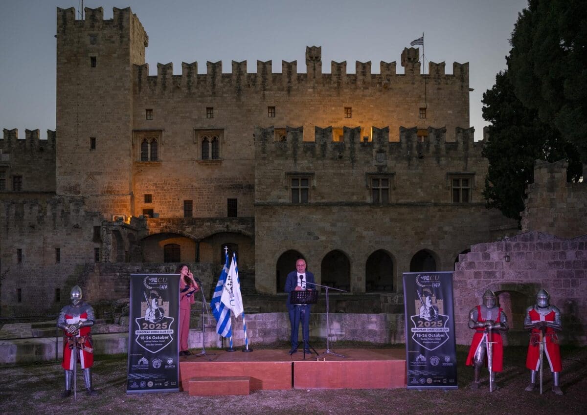 Στον Προμαχώνα του Παλατιού του Μεγάλου Μαγίστρου στην Παλιά Πόλη της Ρόδου, πραγματοποιήθηκε το βράδυ του Σαββάτου η τελετή έναρξης του Διασυλλογικού σκακιστικού γεγονότος της Ευρώπης: Το 40ό EuropeanChessClubCup (ECCC)και το 29ο EuropeanWomen’sChessClubCup ή αλλιώς το “Champions League του σκακιού”, καθώς σε αυτό συμμετέχουν