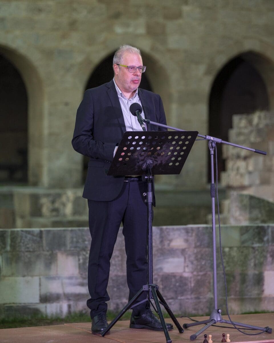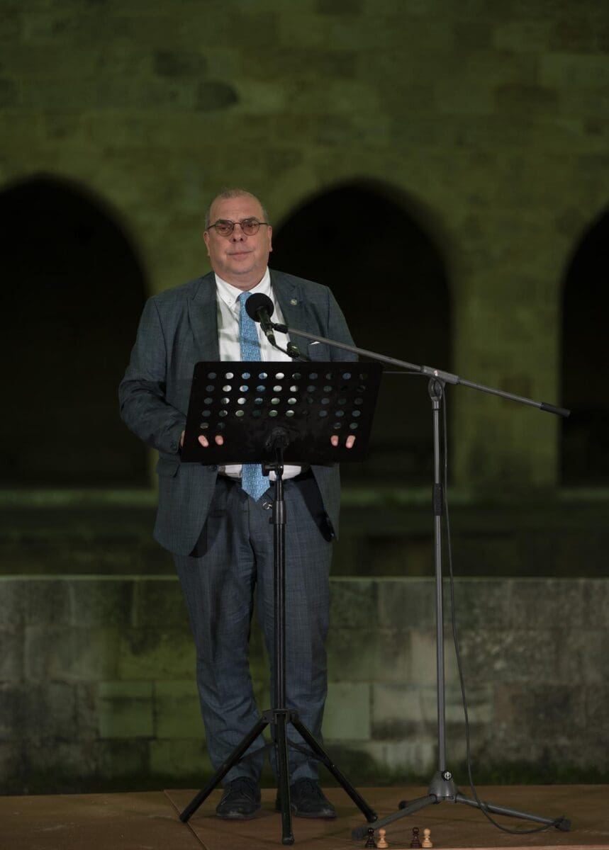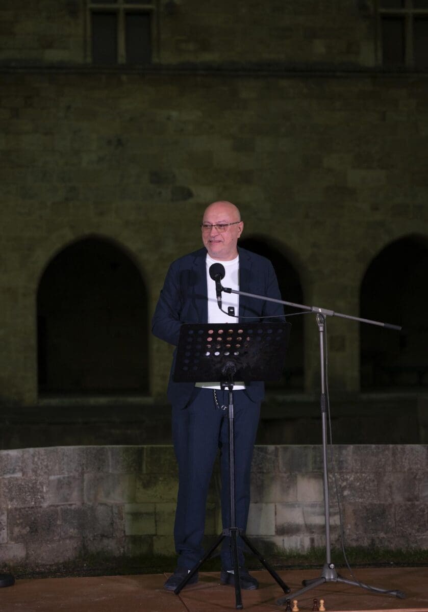 «Είναι μεγάλη μας τιμή να φιλοξενούμε αυτή τη διοργάνωση. Πρόκειται για μια σημαντική γιορτή του σκακιού, του πολιτισμού και της συνεργασίας. Θα ‘θελα, όμως, να πω κάτι για τους ανθρώπους που στέκονται πίσω απ’ αυτήν εδώ την προσπάθεια. Κατ’ αρχάς για το ΔΣ και τον πρόεδρο Στάμο Καράβα, τον Νίκο Βασιλάκη, τον Σπύρο Καραμποΐκη, τους συνεργάτες, τους φίλους του ομίλου που “αθόρυβα με επιμονή και μεράκι, μια λέξη που δεν μεταφράζεται στ’ αγγλικά, δουλεύουν συνεχώς, ώστε τέτοιες εκδηλώσεις να γίνονται πραγματικότητα. Το σκάκι είναι παιδεία, μια μορφή επικοινωνίας και για μένα προσωπικά είναι χαρά. Ένα ευγενές άθλημα. Ο «Ιππότης» θέλει κι ελπίζει να βάλει τη Ρόδο στον ευρωπαϊκό σκακιστικό χάρτη, είναι σε καλό δρόμο και θα το πετύχει. Ευχαριστούμε την Περιφέρεια Νοτίου Αιγαίου, το Δήμο Ρόδου και όλους εκείνους που βοηθούν η Ρόδος να γίνει επίκεντρο του παγκοσμίου σκακιού. Καλή επιτυχία σε όλες τις ομάδες που θα συμμετάσχουν στο τουρνουά»