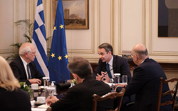 Μήνυμα των Βρυξελλών προς Άγκυρα μέσω Αθηνών. Με τον Ύπατο Εκπρόσωπο της Ευρωπαϊκής Ένωσης για Θέματα Εξωτερικής Πολιτικής και Πολιτικής Ασφάλειας, Ζοζέπ Μπορέλ, συναντήθηκε στις 18.00 στο Μέγαρο Μαξίμου ο Κυριάκος Μητσοτάκης.