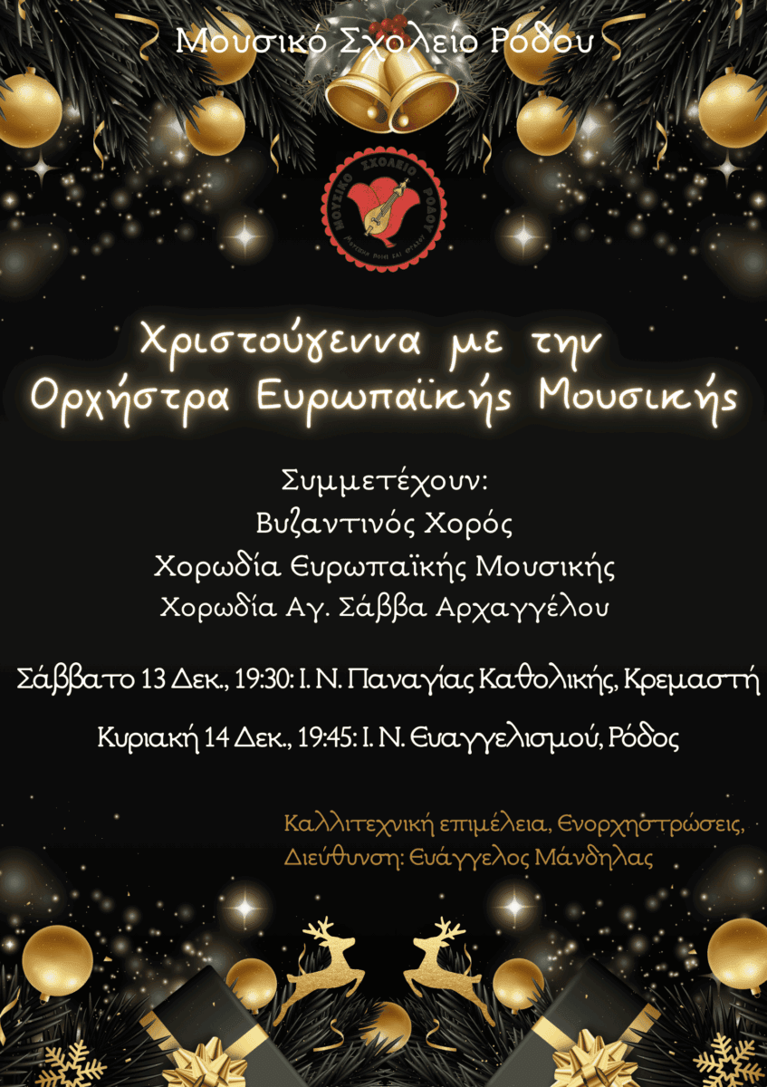 To Μουσικό Σχολείο Ρόδου, σας προσκαλεί στις παρακάτω συναυλίες και δράσεις, ενόψει των Χριστουγέννων: