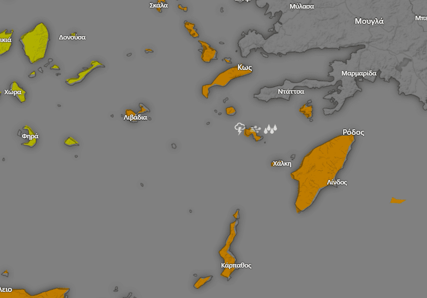 γ. στα Δωδεκάνησα σήμερα Δευτέρα από νωρίς το απόγευμα έως και τις απογευματινές ώρες της Τρίτης