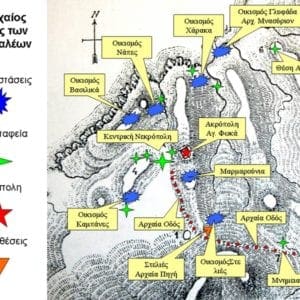 Συνολικά στην περιοχή διασώζονται κομμάτια των τειχών που περιέφραζαν την πόλη, οικοδομήματα των οικισμών και τάφοι λαξευμένοι στους βράχους.