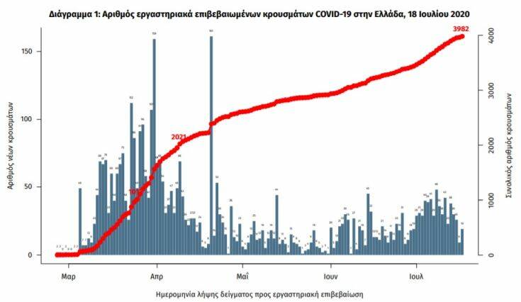 Με τα νέα κρούσματα, ο συνολικός αριθμός τους ανέρχεται σε 3983 (ημερήσια μεταβολή +0.5%), εκ των οποίων 54.7% άνδρες.