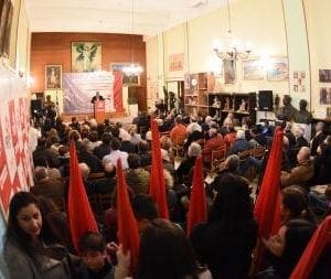 Το απόγευμα της ίδιας μέρας πλήθος κόσμου παρακολούθησε με έντονο ενδιαφέρον την ομιλία του Δ.Κουτσούμπα στην αίθουσα του Πνευματικού Κέντρου.