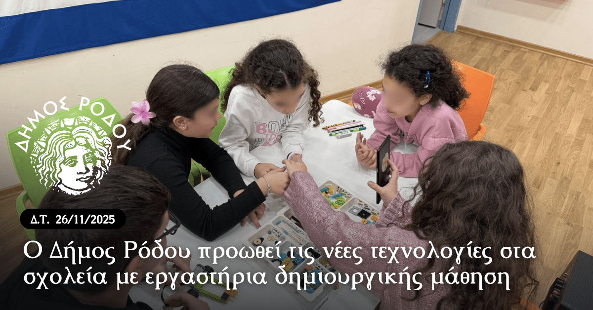 Ο Δήμος Ρόδου προωθεί τις νέες τεχνολογίες στα σχολεία με εργαστήρια δημιουργικής μάθηση