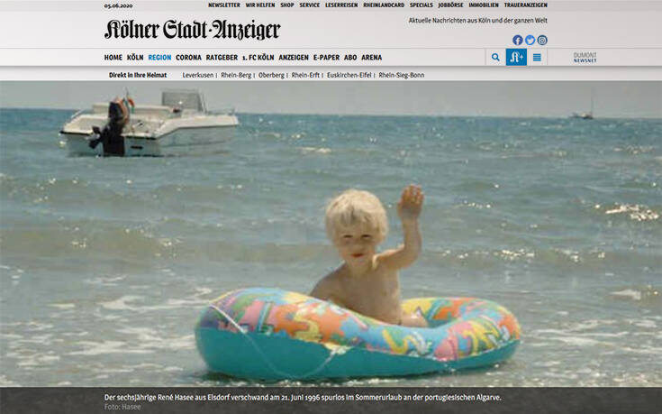 Σύμφωνα με το δημοσίευμα, ο εξάχρονος Ρενέ είχε εξαφανιστεί σε μια παραλία του Αλγκάρβε το 1996, όταν διέφυγε για λίγο της προσοχής της μητέρα του και του συντρόφου της. Η υπόθεση συνέβη έντεκα χρόνια πριν από την παγκοσμίως γνωστή εξαφάνιση της -τότε τρίχρονης- Μάντλιν στην πόλη Πράια ντα Λουζ, του Αλγκάρβε.