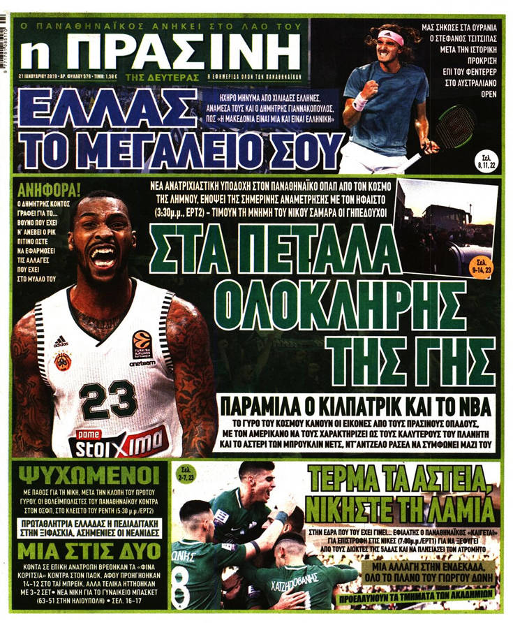 «Μας σήκωσε στα ουράνια ο Στέφανος Τσιτσιπάς» γράφει η Πράσινη.