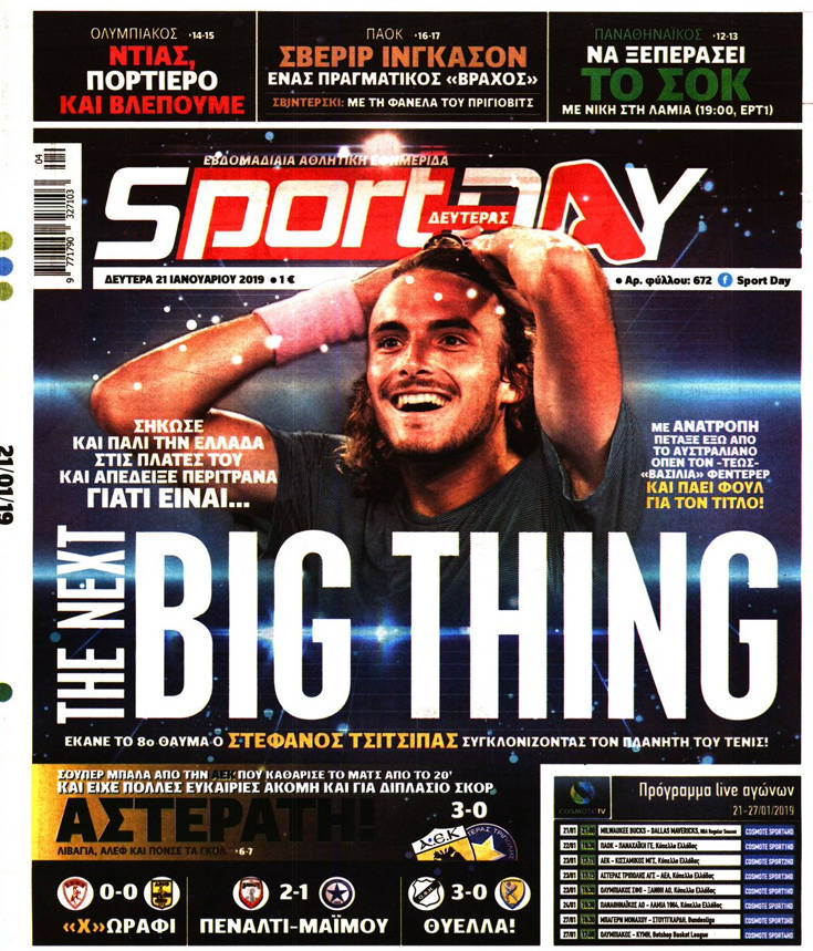 «The next big thing» χαρακτηρίζει τον Στέφανο Τσιτσιπά η Sportday, προσθέτοντας πως ο τενίστας σήκωσε και πάλι την Ελλάδα στις πλάτες του.