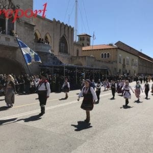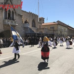 Με ηλιοφάνεια και τη δέουσα επιβλητικότητα που αρμόζει στην ημέρα, και την διπλή εορτή για τη χώρα μας, ολοκληρώθηκε σήμερα η παρέλαση μαθητών, στρατεύματος, πολιτιστικών συλλόγων και σωματείων στη Ρόδο για την εθνική επέτειο της 25ης Μαρτίου.