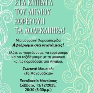 «Στα κύματα του Αιγαίου χορεύουν τα Δωδεκάνησα!» Χοροεσπερίδα – Αφιέρωμα στα νησιά μας 10 Δεκεμβρίου 2025 12:29