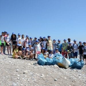 Οι μαθητές του σχολείου με τα παιδιά που συμμετέχουν στο mini club, από διάφορες εθνικότητες, εφοδιάστηκαν με καπέλα, γάντια και σακούλες και έφεραν ένα πολύ καλό αποτέλεσμα από την εξόρμηση καθαριότητας στις όχθες του ποταμού Λουτάνη, κοντά στο ξενοδοχείο.