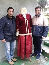 ΦΩΤΟΓΡΑΦΙΕΣ: Ο πρόεδρος του Συλλόγου Αριστείδης Ε.Μιαούλης και ο ταμίας κ. Ευθύμιος Δ. χατζηκώστας με την Πατμιακή φορεσιά που εστάλη στο Γέννειο Λύκειο Πάτμου. Με τη φορεσιά και η κατασκευάστριά της Αλεξία Κατσιμπράκη.
