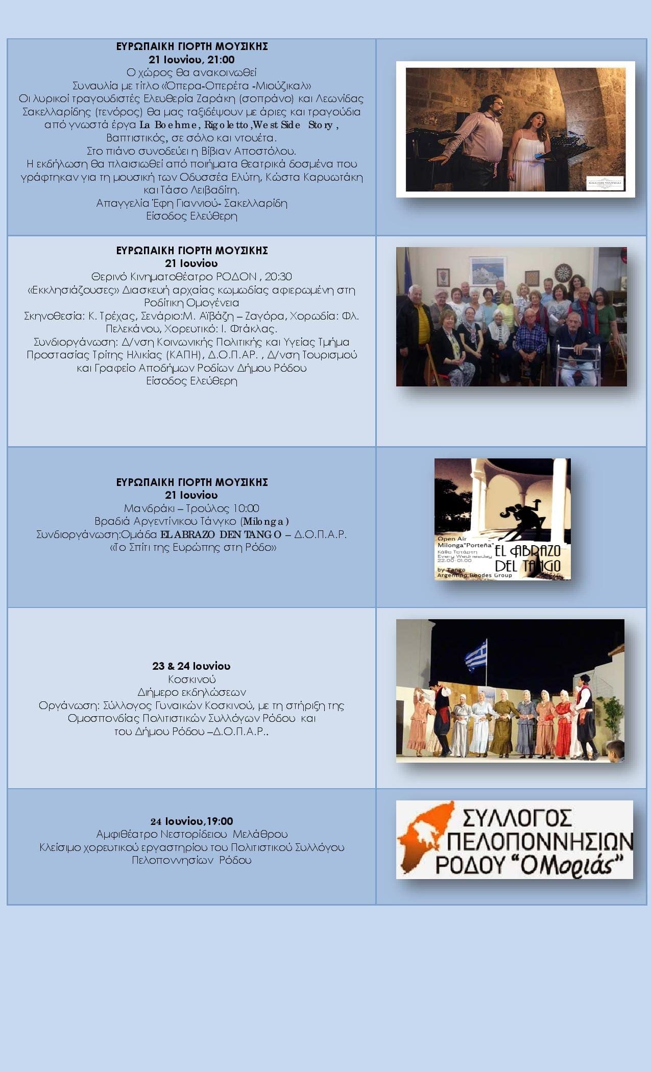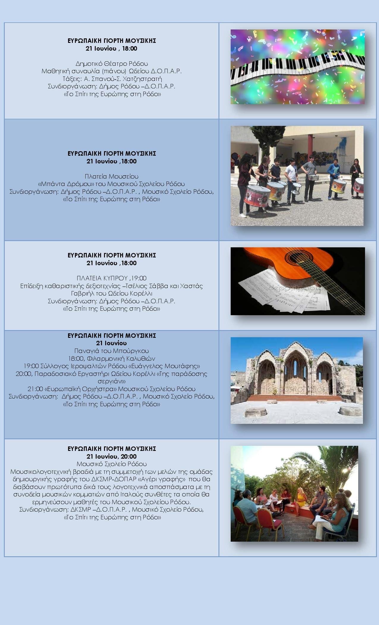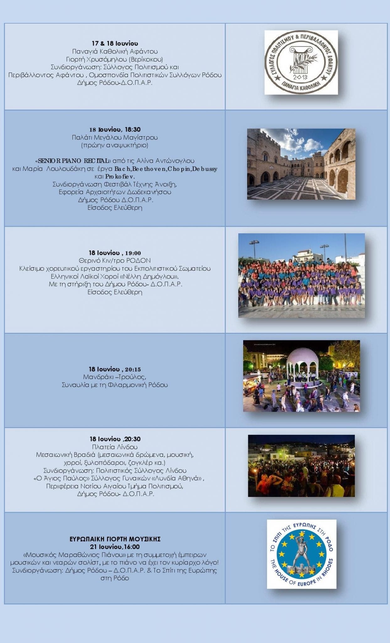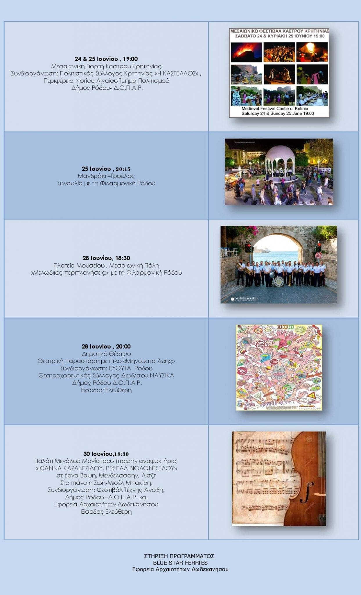 Οι πολιτιστικές εκδηλώσεις για τον Ιούνιο στη Ρόδο
