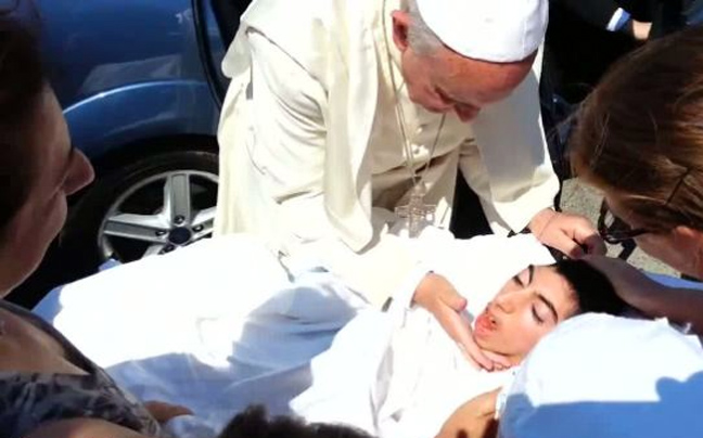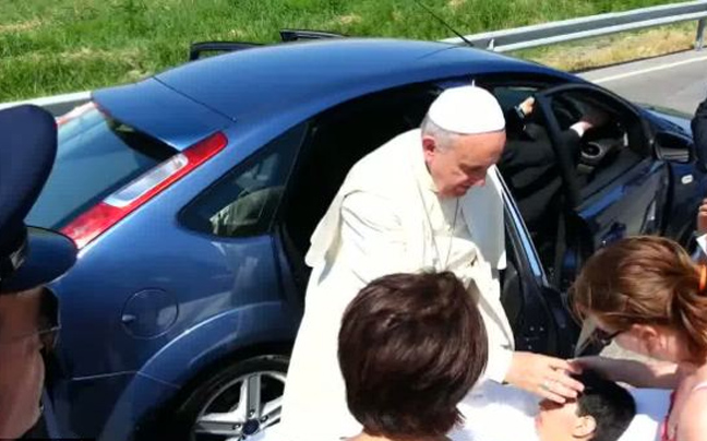 Το ανθρώπινό του πρόσωπο έδειξε για ακόμη μία φορά ο Πάπας Φραγκίσκος. Ενώ επέβαινε στο αυτοκίνητό του, σταμάτησε και βγήκε να φιλήσει μια νεαρή κοπέλα με ειδικές ανάγκες, που ήταν επάνω σε φορείο.