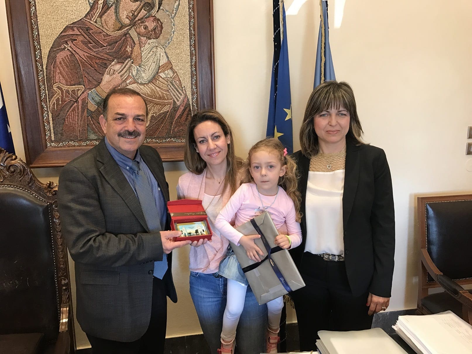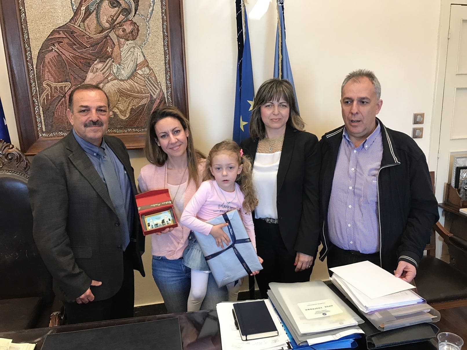 Τέλος, ο δήμαρχος μοίρασε σε όλους αναμνηστικά δώρα ακόμα και στην μικρή Φένια, κόρη τους ζεύγους Μπατσικούρα.