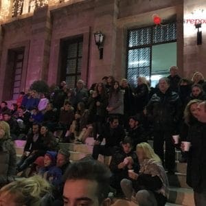 Παρά το τσουχτερό κρύο πολλοί κάτοικοι του νησιού συγκεντρώθηκαν στην Πλατεία Δημαρχείου της Ρόδου για να γιορτάσουν τη φυγή του 2016 και να καλωσορίσουν με χαμόγελα και πολλές ευχές το 2017.