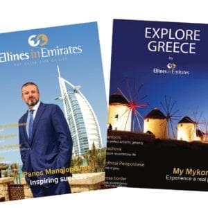 Στις εκδόσεις της Ellines in Emirates συγκαταλέγονται: το προσωποκεντρικό περιοδικό Ellines in Emirates με Έλληνες που διακρίνονται στα Ηνωμένα Αραβικά Εμιράτα, το περιοδικό Explore Greece με αφιερώματα και προτάσεις για Τουριστικούς προορισμούς στην Ελλάδα και το περιοδικό Explore Greek Gastronomy πού αφορά στη Γαστρονομία της Ελλάδας.