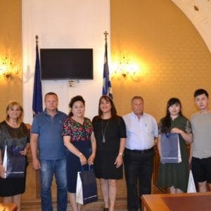 Το μεσημέρι της Τετάρτης η Αντιπεριφερειάρχης Τουρισμού, Πολιτισμού και Αθλητισμού κα Μαριέτα Παπαβασιλείου με τον Αντιπεριφερειάρχη Υγείας, Πρόνοιας και κοινωνικής συνοχής κ. Θωμά Σωτρίλλη και τον εντεταλμένο περιφερειακό σύμβουλο επιχειρηματικότητας κο Χρήστο Ευστρατίου υποδέχθηκαν στην αίθουσα του περιφερειακού συμβουλίου την κινεζική αντιπροσωπεία όπου έγινε ανταλλαγή αναμνηστικών δώρων.
