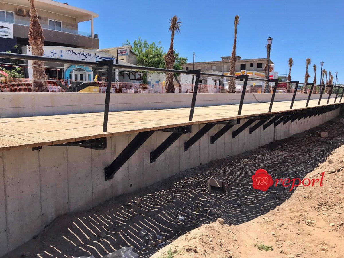 Το ξύλινο πάτωμα έχει σχεδόν ολοκληρωθεί και μένουν λιγότερο απο 30 μέτρα , ενώ έχουν τοποθετηθεί φωτιστικά σώματα και προστατευτικό κιγκλίδωμα. Στο παρτέρι που δημιουργήθηκε έχουν φυτευτεί νέα δέντρα (όλα φοίνικες) στην θέση των παλιών που κόπηκαν . Φωτισμός θα υπάρχει και στο δάπεδο.