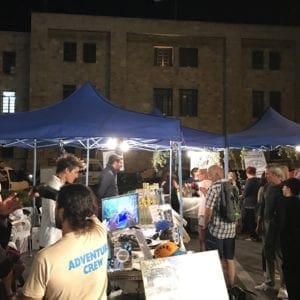 Γύρω τους υπήρχαν πάγκοι με όλα τα παραδοσιακά προϊόντα της Ρόδου, ενώ παράλληλα γινόταν και επίδειξη του τρόπου παρασκευής τοπικών προϊόντων καθώς και παρουσίαση παραδοσιακών επαγγελμάτων.