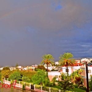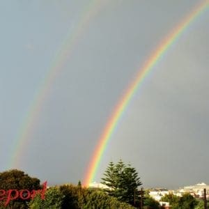 Χαρακτηριστικές οι φωτογραφίες που τραβήχτηκαν πριν από λίγα λεπτά (18.00) στην πόλη της Ρόδου! Ο φακός αποτυπώνει καταιγίδα από τη μία πλευρά με σκούρο γκρίζο ουρανό, άγριο και επιβλητικό! Ένα μαγικό διπλό ουράνιο τόξο από την άλλη πλευρά που ξεπροβάλλει μετά την καταιγίδα και στο βάθος… η καλοκαιρινή Ρόδος με δεκάδες κρουαζιερόπλοια που αποβίβασαν στο νησί μας χιλιάδες επισκέπτες!