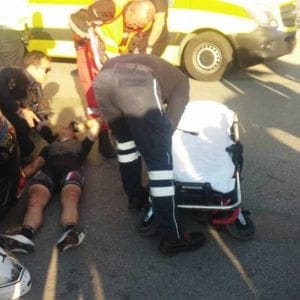 Τρεις ποδηλάτες μεταφέρθηκαν με τραυματισμούς στο νοσοκομειο της Ρόδου μετά απο σύγκρουση με μοτοσυκλέτα που τους συνόδευε . Το περιστατικό σημειώθηκε λίγο πριν της πέντε στο Άγαλμα του Διαγόρα .