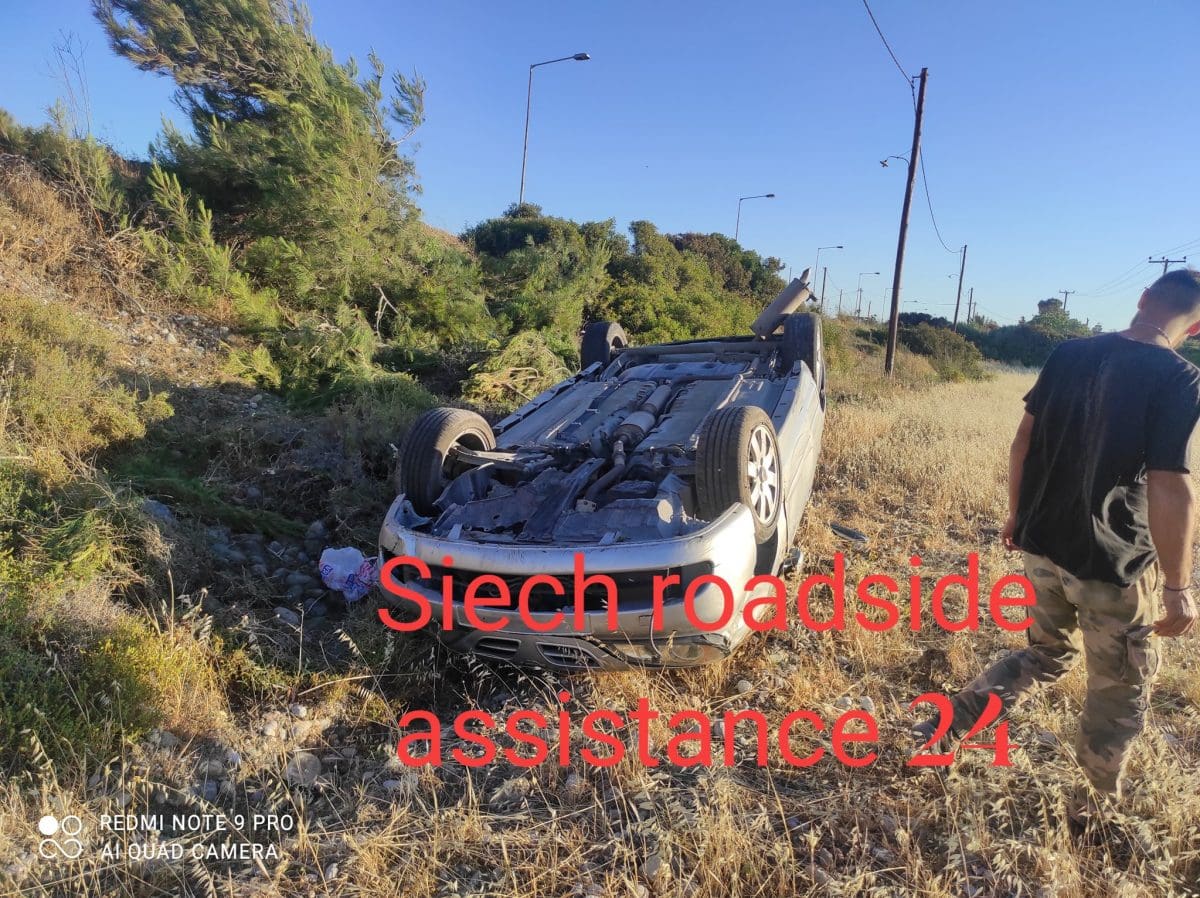 Επιβατικό αυτοκίνητο κάτω απο αδιευκρίνιστες συνθήκες βγήκε εκτός πορείας με αποτέλεσμα να καταλήξει σε παρακείμενο χωράφι και να ανατραπεί.