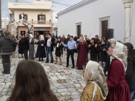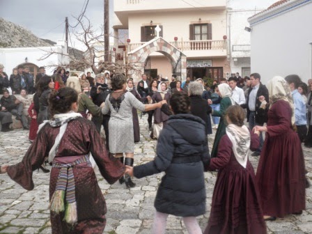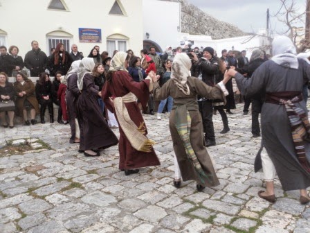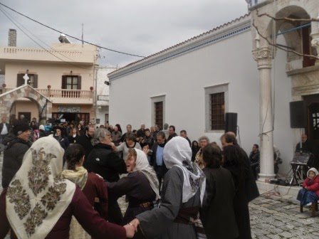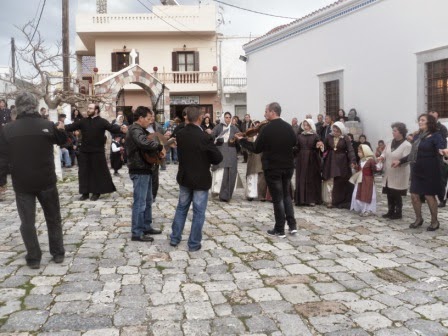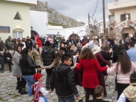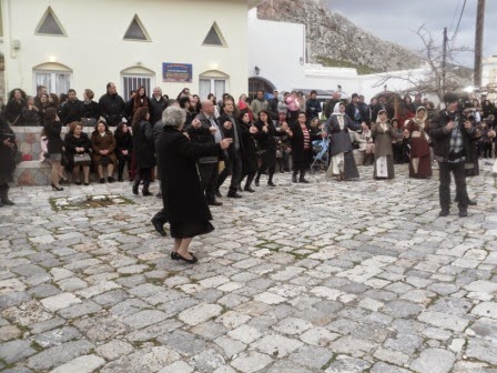 Η κυριακή της Αποκριάς στο νησί είναι απόλυτα συνυφασμένη με τον παραδοσιακό χορό στην αυλή της Παναγίας, πριν ο Δεσπότης σημάνει την έναρξη του “Εσπερινού του Συγχώριου”.