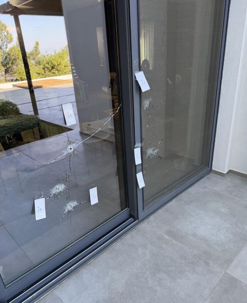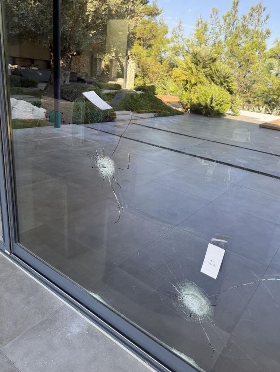 Σύμφωνα με τις πρώτες πληροφορίες, σφαίρες διαπέρασαν μπαλκονόπορτες και καρφώθηκαν σε θύρες, προκαλώντας υλικές ζημιές. Στον χώρο βρέθηκε και μαύρο στεφάνι, ένδειξη «προειδοποιητικού» μηνύματος προς τον επιχειρηματία.